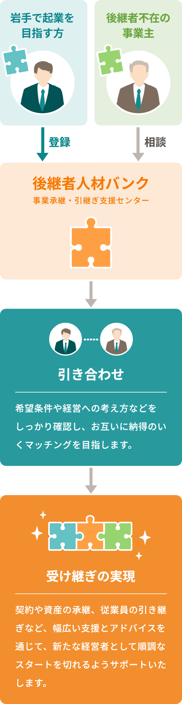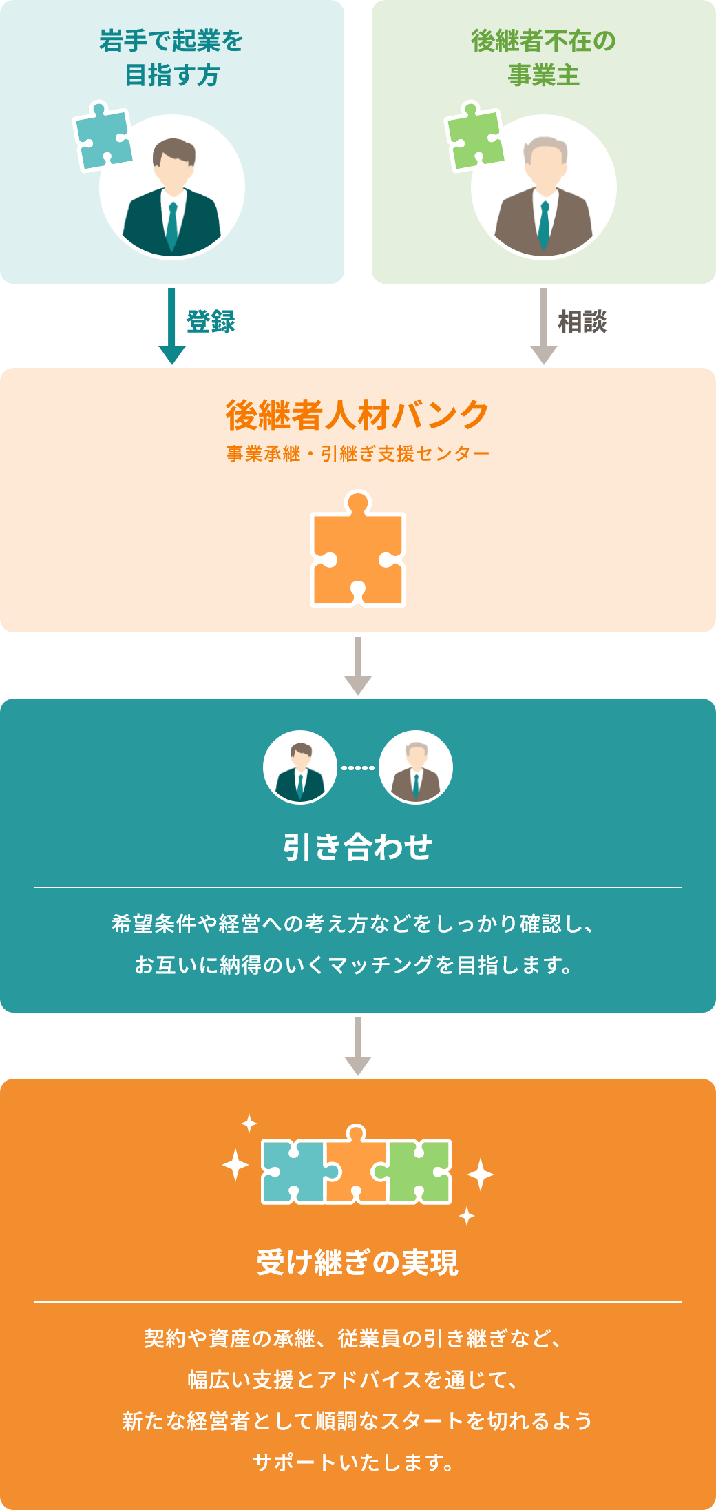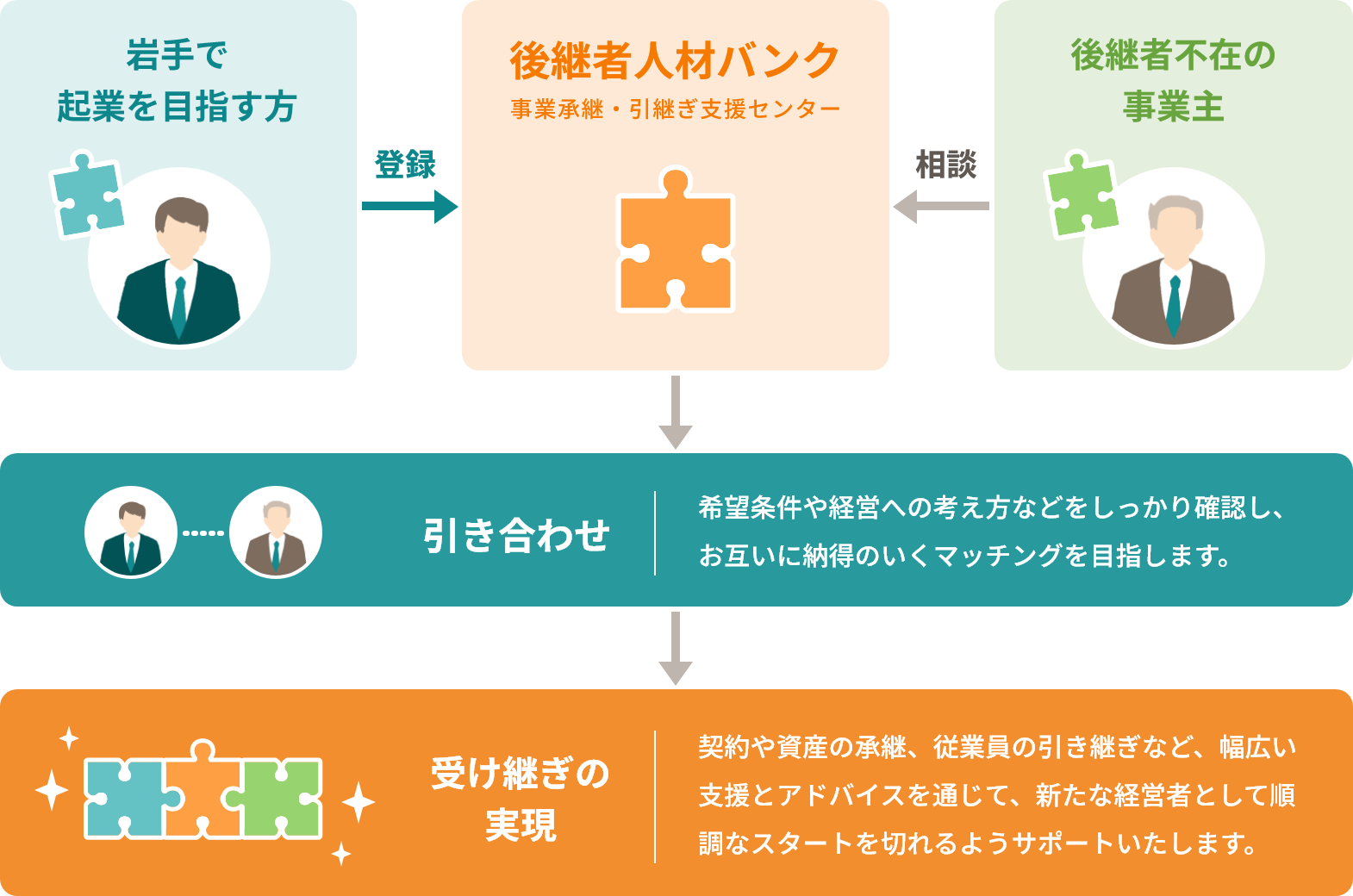 「岩手県後継者人材バンク」は、後継者不在の企業や事業主と、
